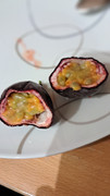 Nach erster Maracujaernte letztes Jahr mit 2 Früchten, hängen dieses Jahr 5 und die erste wurde